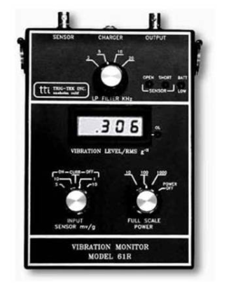 - 61R是一款便攜式的振動檢測儀,支持頻率範圍從3Hz到20KHz,具有10g、100g、1000g三個滿量程範圍,內置電池便於現場測試場合。
